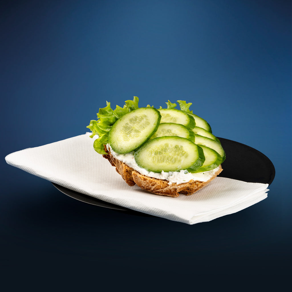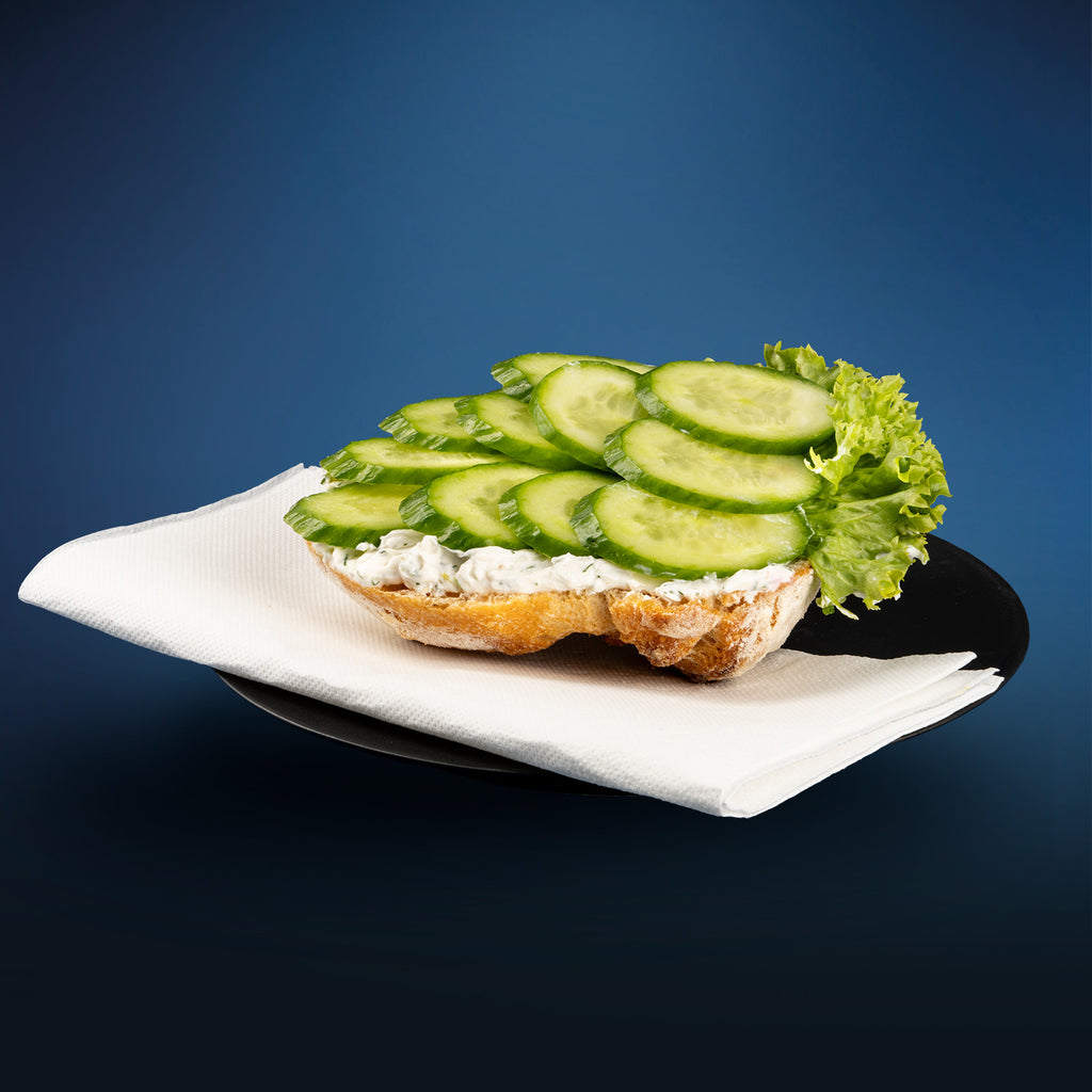 Halbe Sanssoucibrötchen Gurke Dillcreme