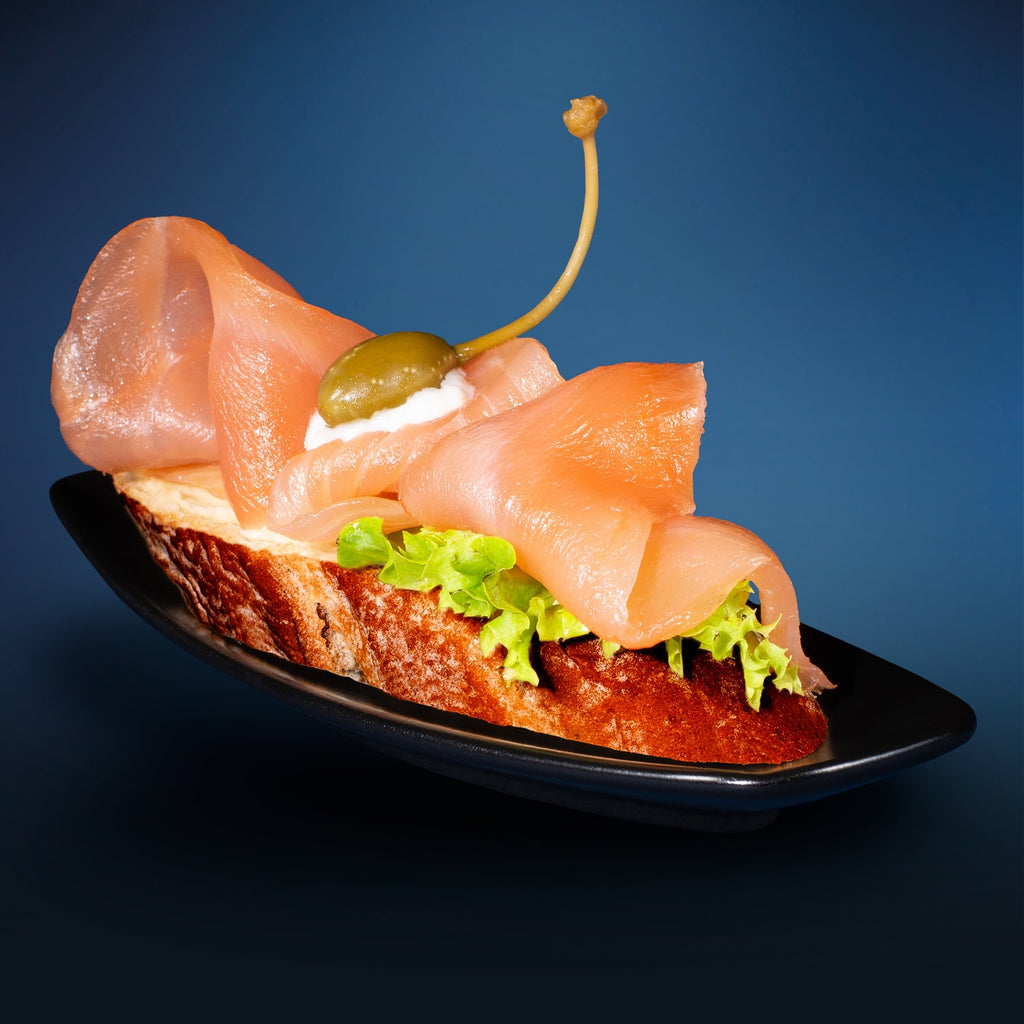 Canapé mit Lachs - handliches Canapé für Buffet, Empfang und Event. Servierfertig und vielseitig kombinierbar.