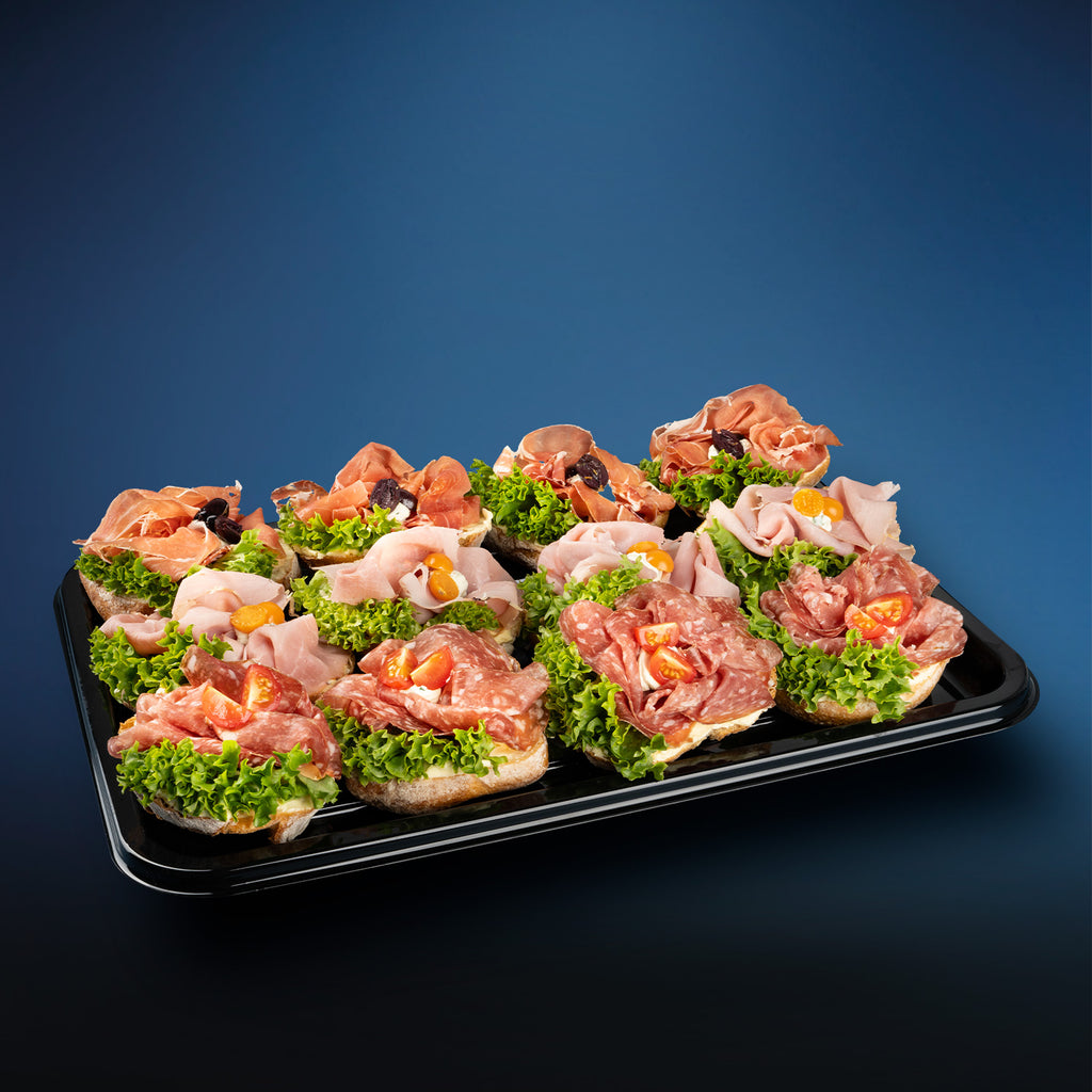 Halbe Brötchen mit Wurst- und Schinkenspezialitäten