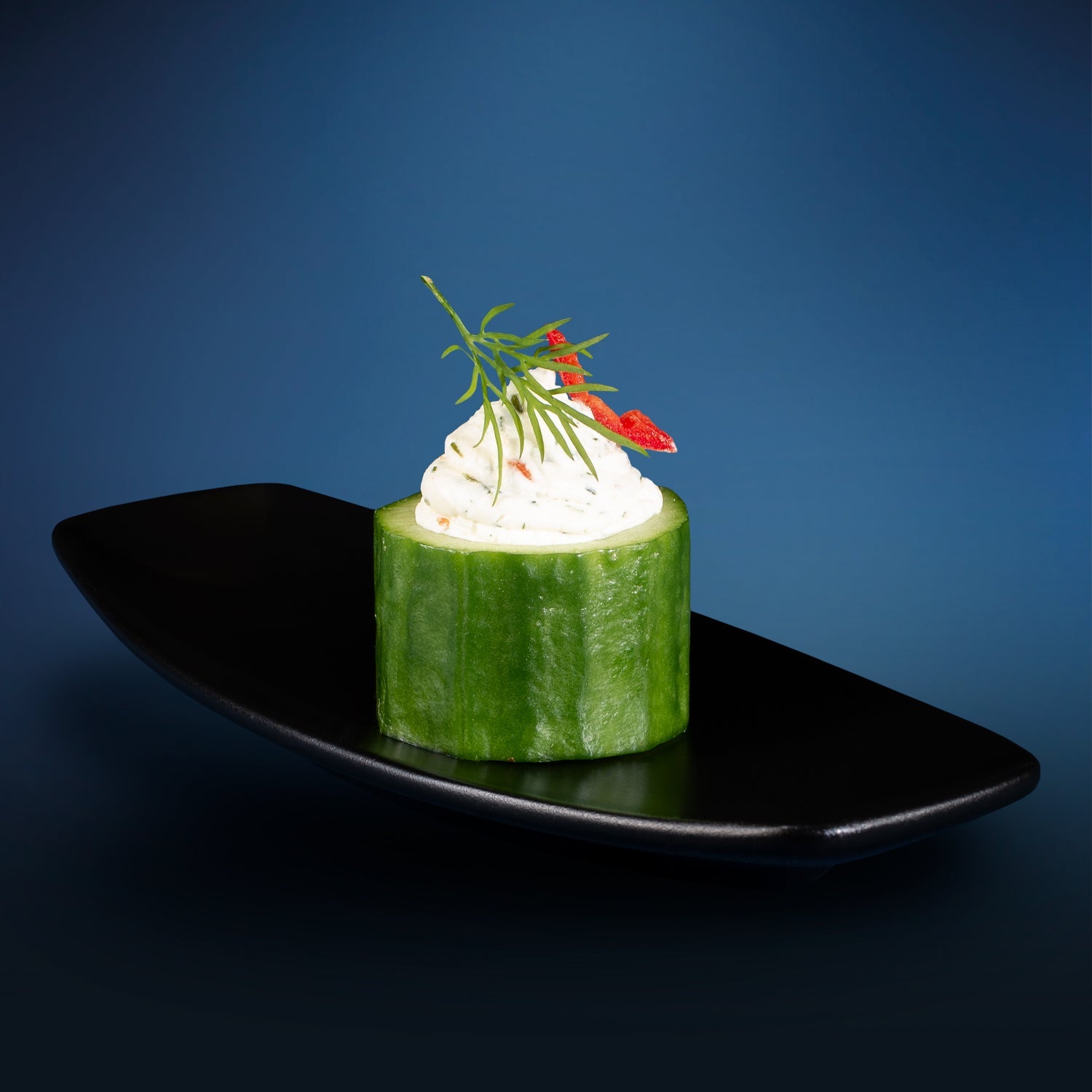Der vegane Gurkencup ist ein erfrischender Happen mit feiner Dillnote – perfekt für leichte Empfänge oder sommerliche Buffets. Die knackige Gurke bildet die Basis für diese kleine, aromatische Köstlichkeit.